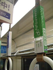 地下鉄車内ではつり革に「OSAKA PiTaPa」の広告が。