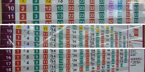 午前中は臨時列車が走っていないのですが、10:04~11:41の間で普通が末尾4分→末尾6分発、特急が末尾1分→末尾2分発に若干の繰り下げ。
