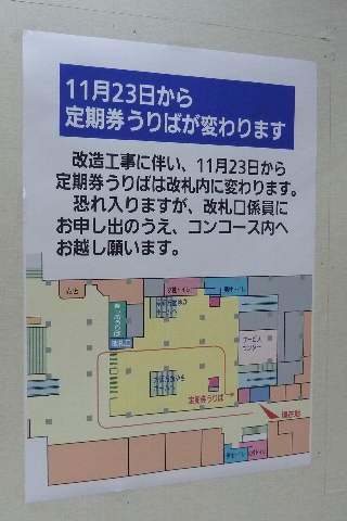 ところで、高槻市駅では定期券売り場が11月23日から移動するそうです。